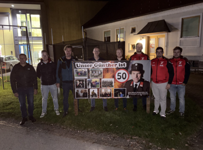 Wir gratulieren am 17.10. unserem LM Günther "Gü" Schafler herzlich zu seinem 50. Geburtstag. In der früh weckten ihn unsere Kameraden und stellten das Geburtstagsplakat auf, am Nachmittag besuchte ihn die Wettkampfgruppe mit dem Landrover.