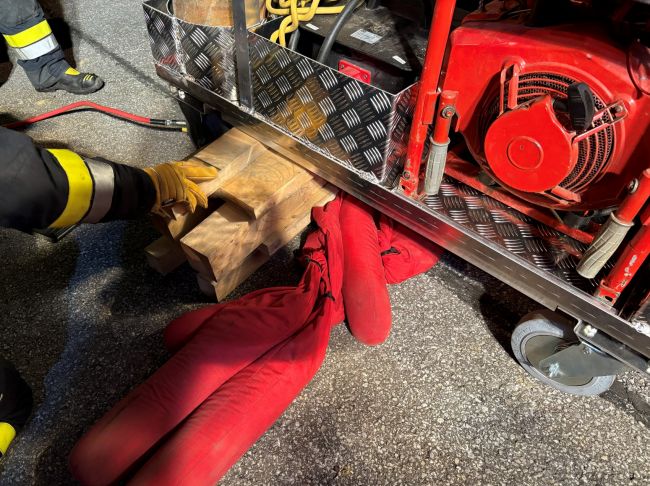 Wir nutzten die Hebekissen, um eine eingeklemmte Person unter einem Fahrzeug zu retten. Danach übten wir den Einsatz unserer Seilwinde mit und ohne loser Rolle im Rahmen der Fahrzeugbergung. Anschließend wurden weitere Geräte beübt, um die Routine aufrecht zu erhalten.