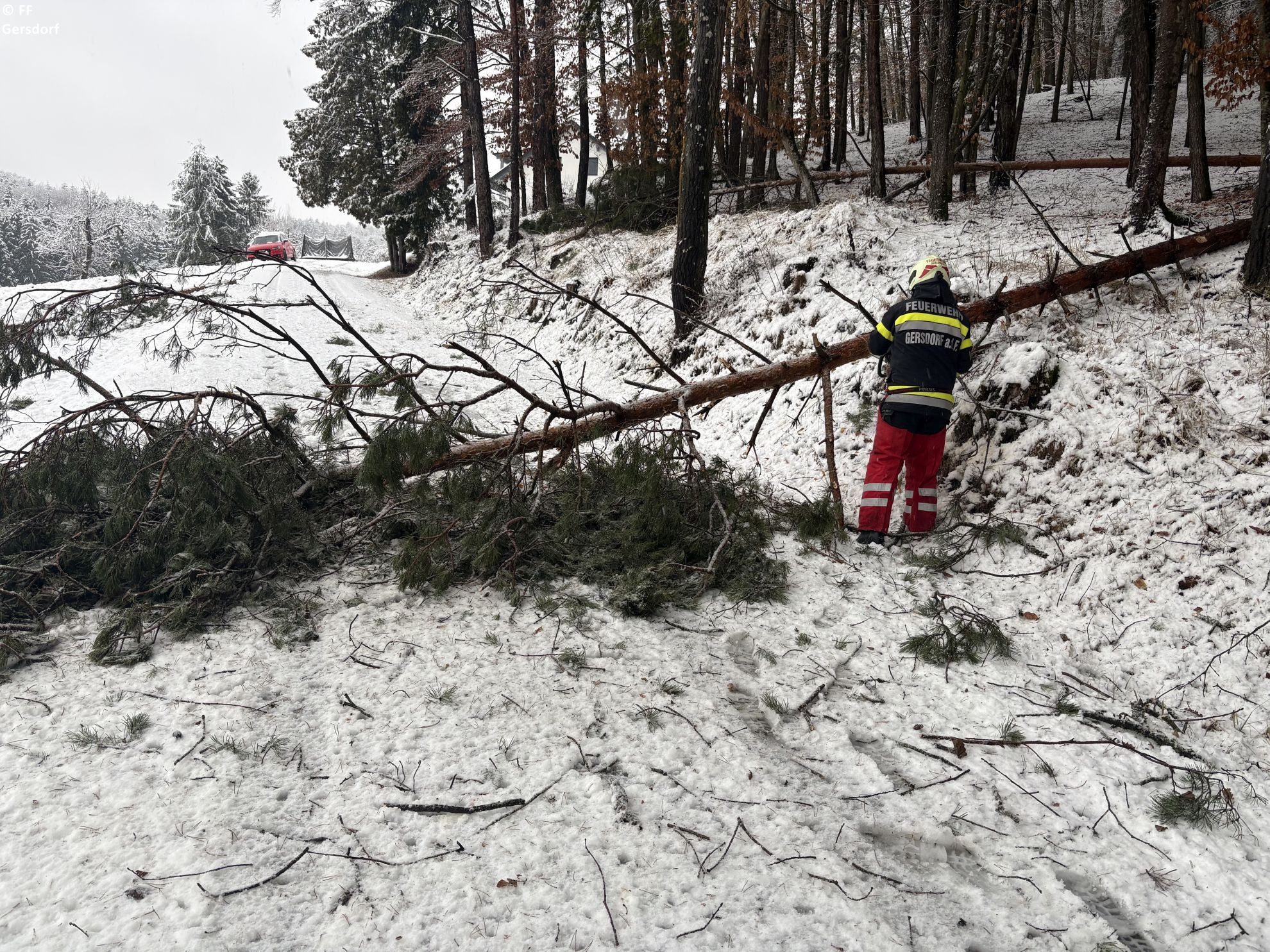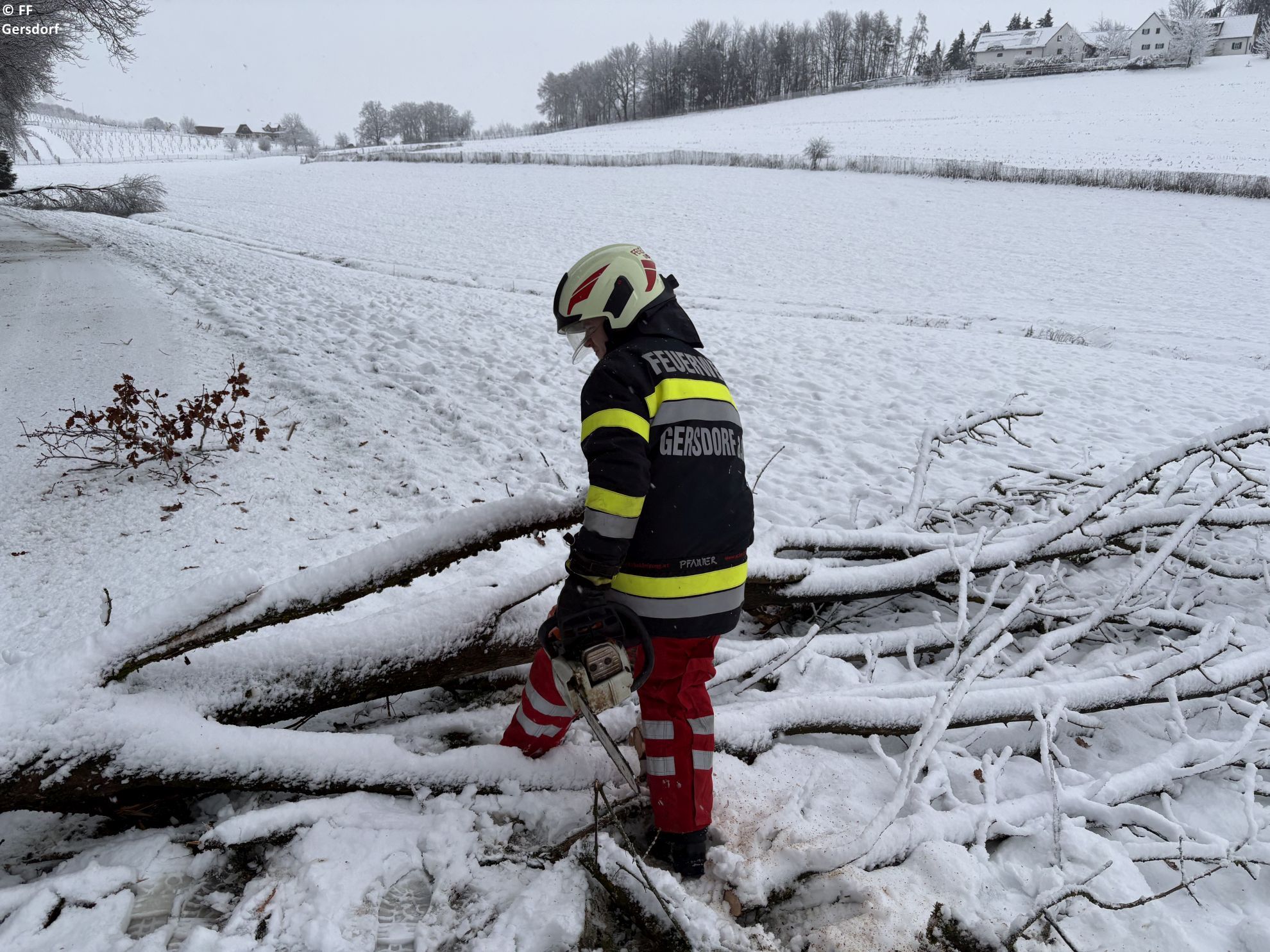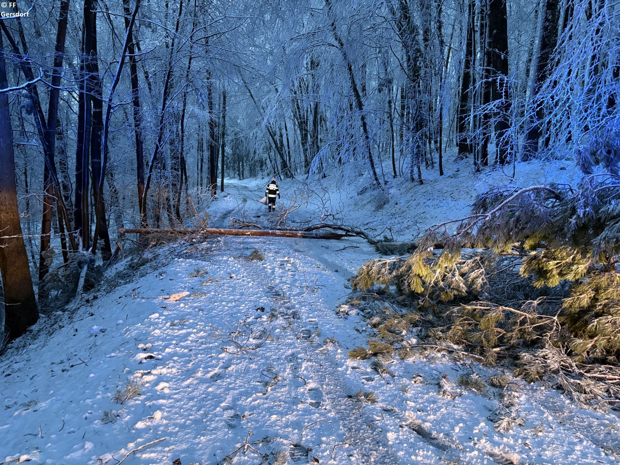 Die heftige Rückkehr des Winters mit dem Schneesturm am 20.02. löste auch in Gersdorf zahlreiche Einsätze aus. In der Nacht wurden wir zu mehreren umgestürzten Bäumen gerufen. Nachdem wir um ca. halb 7 ins Rüsthaus zurückkehrten, wurden wir bereits kurz darauf zu weiteren Einsätzen alarmiert. Gesamt waren 10 Bäume an unterschiedlichen Stellen im Ortsgebiet zu entfernen - ebenso waren zwei Autos hängengeblieben, welchen wir bei der Weiterfahrt assistierten.